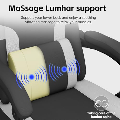 HapGIFT Computer Chair, Gaming Chairs with Footrest and Massage Lumbar Support, High Back Ergonomic Swivel Gamer Chair, Reclining Gaming Chairs with Armrests, Headrest for Adults, 300LBS (Black-Grey)