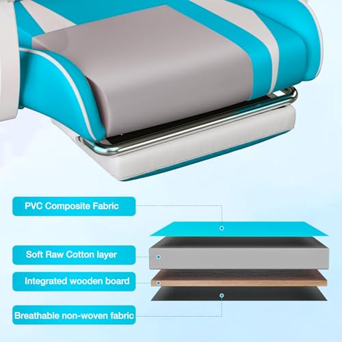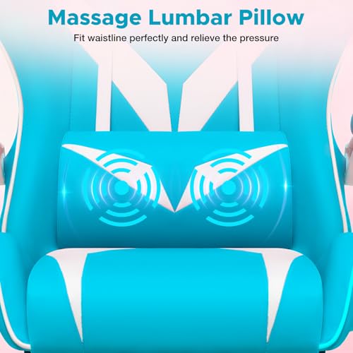 HOFFREE Massage Gaming Chair for Kids Computer Gamer Chair with Footrest and Lumbar Support Reclining PC Game Chair with Headrest (Light Blue+White)