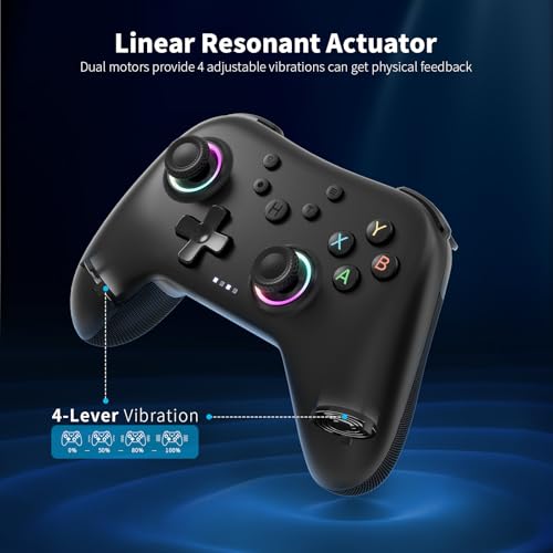 AceGamer Aurora Generation 2.4G Wireless Bluetooth Controller for PC/Android/Switch/iOS/Steam Deck with Linear Motors, Hall Joysticks and RGB Light- Upgraded PC Gaming Controller and Back Buttons Lock (Black)