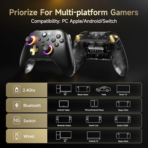 Multi-Platform Compatibility – Works seamlessly with PC, Switch, iOS(13.0+ MFi-certified games) & Android. Includes 2.4G receiver for rock-solid connections to Steam Deck, Tesla, Smart TVs, and PCs,1000Hz polling rate ensures pro-level responsiveness.