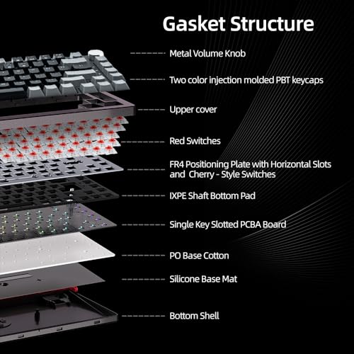 Gasket Mount Design and PCB Single Key Slotting Optical Keyboard: Experience the ultimate in keyboard craftsmanship with this thocky, high-quality mechanical keyboard. Featuring a gasket-mounted structure, an extended silicone pad, and PCB single key slotting, it delivers enhanced resilience and stability for a softer, more elastic typing feel. The five-layer sound-dampening system fills the gaps between the PCB, plate, and switches, effectively eliminating cavity noise and creating a solid, satisfying sound profile. Perfect for both typing and gaming, this keyboard offers a premium tactile experience with exceptional acoustic performance.Gasket Structure