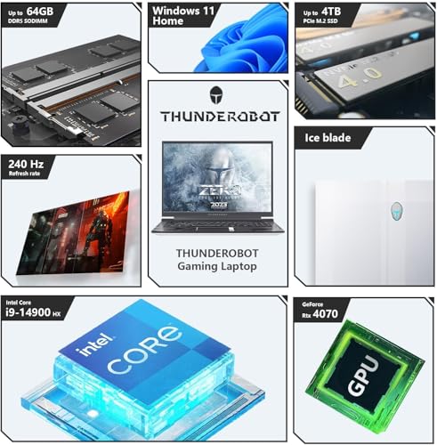 Thunderobot Zero 16 i9 RTX 4070 Gaming Laptop, 16″ WQXGA 240Hz 2.5K Display, 14th Gen Intel Core i9-14900HX, GeForce RTX 4070, 64GB DDR5 RAM, 4TB SSD, RGB Backlit KB, Wi-Fi 6, Win 11 Home, White