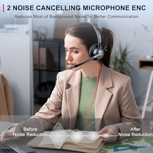 【2-Mic ENC Noise Cancellation】The USB headset features Dual ENC Microphones noise cancellation technology for a richer and clear communication. Flexible 350° Rotational Microphone ensures your voices are clearly conveyed, greatly improving communication efficiency. Ideal for home office, call centers, online meetings and more remote work.