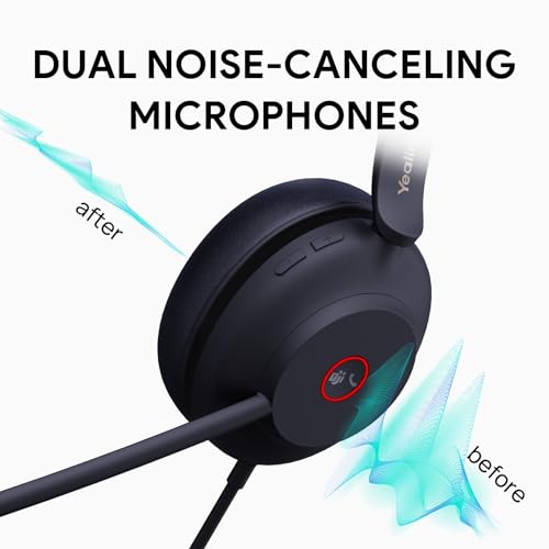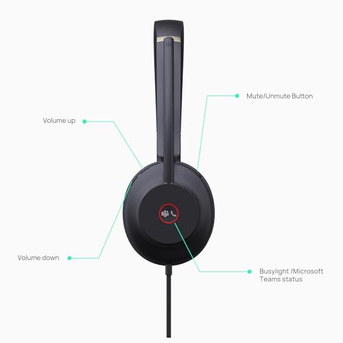 Yealink UH37 USB Headset with Microphone for PC Laptop – Headphones with Noise Cancelling Microphone for Computer,On-Ear Wired Office Call Center Headset Dual