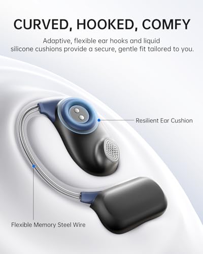 OPEN-EAR AWARENESS: This open-ear earbuds allows stay in tune with your surroundings while enjoying pristine melodies, such as public transit announcements or chatting with others, stay safe and never lose important ambient messages anymore