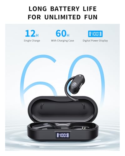 60 Hrs PLAYTIME & MULTIFUNCTIONAL BUTTONS – Say goodbye to battery life anxiety. The CT13 open ear headphones offer an impressive 60 hrs playtime, and each earbud can be used continuously for up to 12 hours. In addition, the external LED display allows you to know the remaining power of the charging case in real time, so you will never be without music on the go. With convenient physical buttons, you can adjust the volume, skip tracks, answer calls, and more just by pressing the buttons