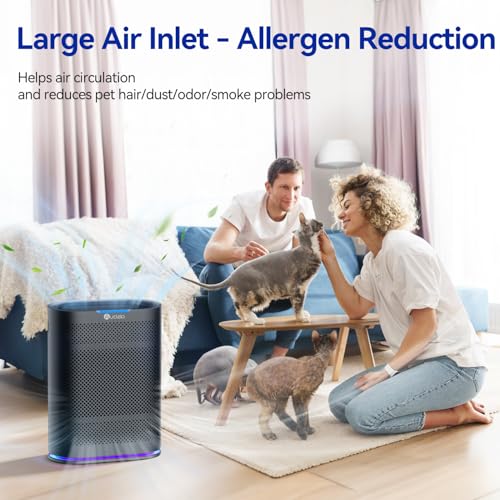 [Larger Purification Area] This home air purifier can quickly purify air in a room of 2,100 Ft² 5 times in an hour, effectively filtering the air of various impurities and allergens such as: smoke, pet hair, dust, pollen, dander, and removing odors. It is a good helper for home cleaning!