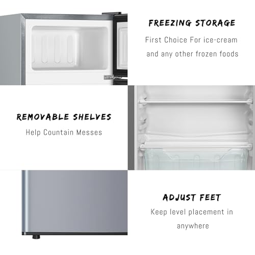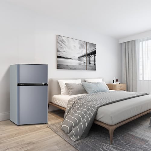 Mini Fridge With Freezer,3.2 Cu.Ft Compact Refrigerator,Mini Refrigerator With 2 Doors For Bedroom,Office,Kitchen,Apartment,Dorm(blue)