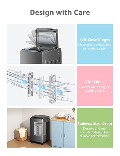 Space saving: – With only 20.7inch in width, 20.3inch in-depth, and 36.6inch in height, this compact washer is able to be stored easily. Fits in your room/RV/dormitory nicely. The large capacity of 1.6cu.ft top load washer can hold 11lbs of cloth. It equips with a stainless steel inner tub which lasts longer.