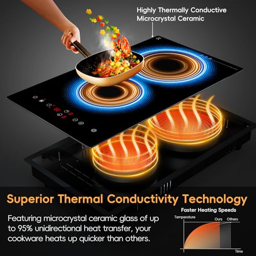 Electric Cooktop 2 Burner, 1800W Radiant Electric Stove Top 120V with Countertop & Built-in Design, 12 inch Touch Control Ceramic Cooktop with Safety Lock, 9 Level Power, Timer – Plug in