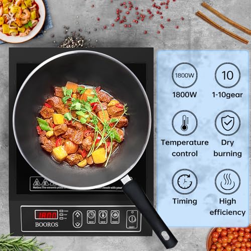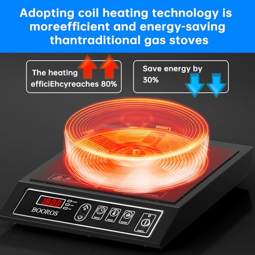 High-Efficiency Heating: Advanced electromagnetic induction technology is adopted, with 1800w rapid heating, uniform heating and time-saving cooking.Compared with the traditional induction stove, BOOROS induction cooker has greatly improved efficiency.