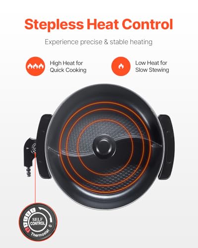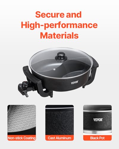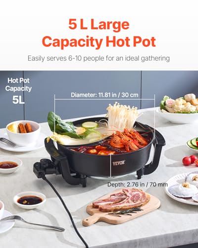 VEVOR Electric Hot Pot, 1360W 5 L Double-flavor Shabu Shabu Pot, Non-Stick Electric Cooker with Divider, Clear Glass Lid, Temperature control, Chinese Hotpot for 6-10 People Family Dinning & Party