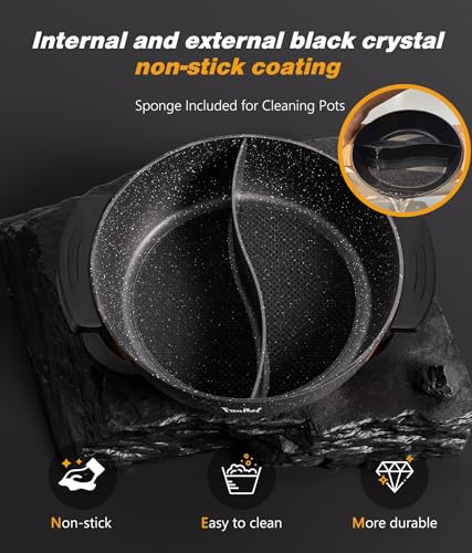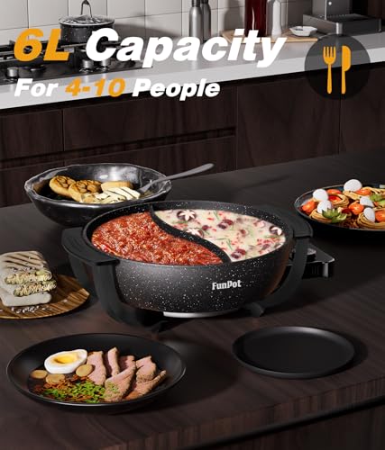 Hot Pot Electric with Divider, 6L Double-Flavor Non-stick pot, Temperature control, Large 6-Litre Capacity, Suitable for 6-12 people (black)