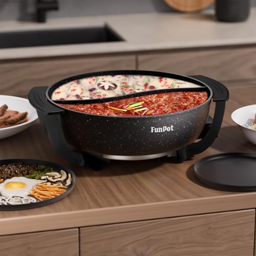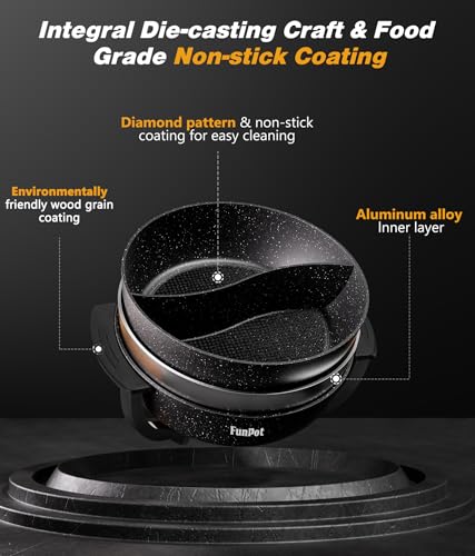 [Enjoy Two Flavors] – FunPot features an integrated divider that enables you to cook both spicy and mild broths simultaneously. Its compartments, designed in an S-shape, prevent spills and leaks, offering a trouble-free cooking experience.