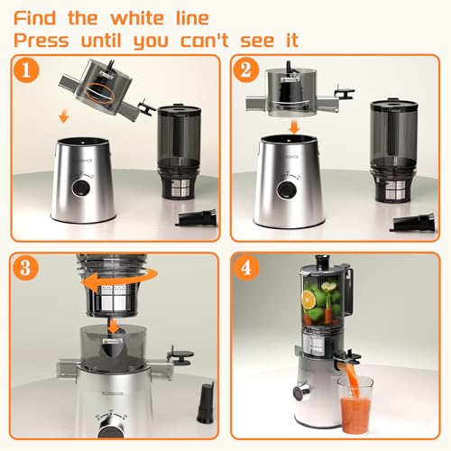 Large Feed Chute & Capacity:Our fully upgraded 5-inch feed chute, enabling you to juice whole fruits and vegetables without pre-cutting.Our comes with a 50oz capacity hopper, you can easily load all your ingredients at once, saving your time and maximizing juice extraction efficiency.