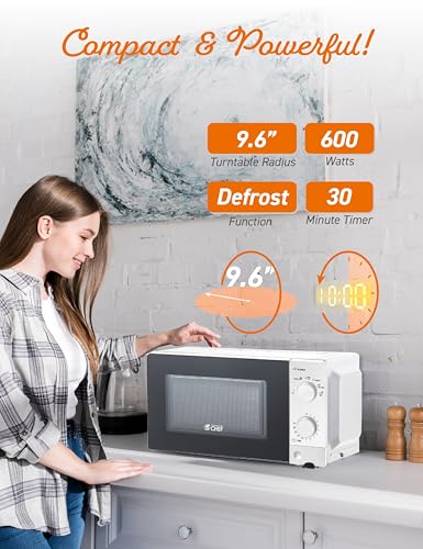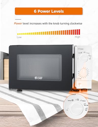 COMMERCIAL CHEF 0.6 Cubic Foot Microwave with 6 Power Levels,Small Microwave with Grip Handle,with 30 Minute Timer and Mechanical Dial Controls,White
