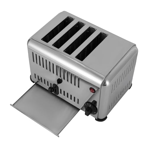 Stainless Steel Toaster 4 slice Commercial Toaster 4 Slot Bread Baking Machine 1.1in Wide Slot with 1-5 Minute Timing for Restaurant and Home Kitchen (1650W 110V)