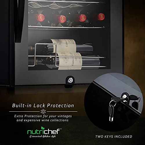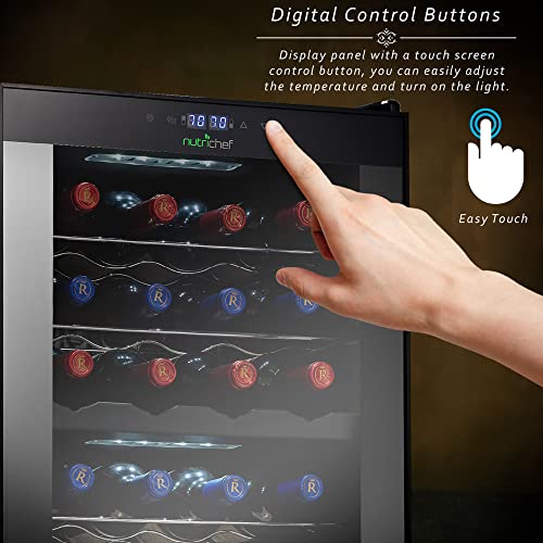NutriChef PKCWCDS285 28 Bottle Fridge | Dual Zone Chiller | Adjustable Temperature 41°F to 64°F | Ultra Quiet Operation | Wine Cooler for Home, & Office | Free Standing 33x16x17 in (Black)