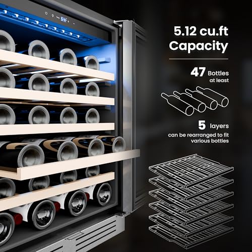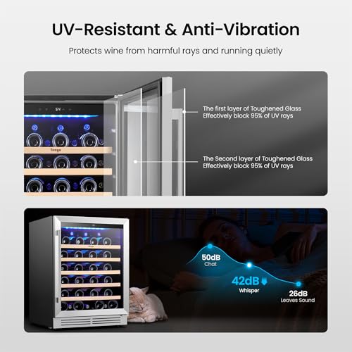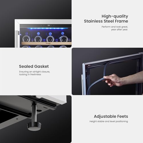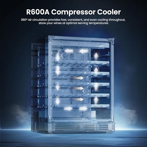 【EFFICIENT COOLING & ANTI-VIBRATION】Equipped with an advanced compressor cooling and a front-facing vent grille system, it provides fast, even cooling, preventing overheating that can be installed as a built-in/under counter/freestanding. Maintaining a vibration-free helps protect the integrity of your wine.