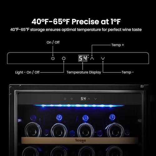 【PRECISE TEMPERATURE CONTROL】The Yeego wine fridge’s temperature range is 40-65℉, which allows you to set it to store whether it’s red, white, or champagne under optimal conditions, preserving the flavor and overall tasting experience, perfect for wine enthusiasts.