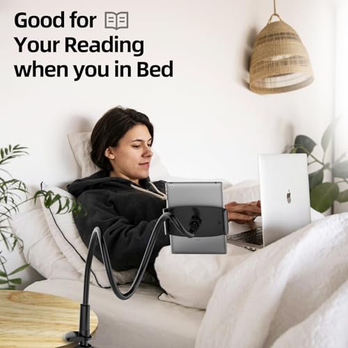 Gooseneck Kindle Tablet iPad Holder Stand for Bed, Flexible Arm Mount for Reading in Bed, Reading Accessories Compatible with iPad mini iPhone/Nintendo Switch/Kindle Fire HD