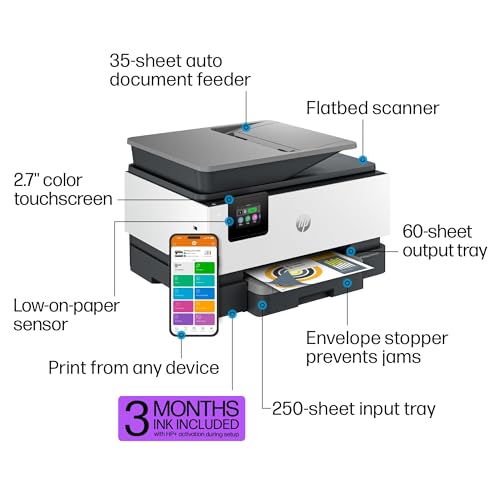 HP OfficeJet Pro 9125e All-in-One Printer, Color, Printer-for-Small Medium Business, Print, Copy, scan, fax,Touchscreen; Smart Advance Scan, 3 months of Instant Ink included