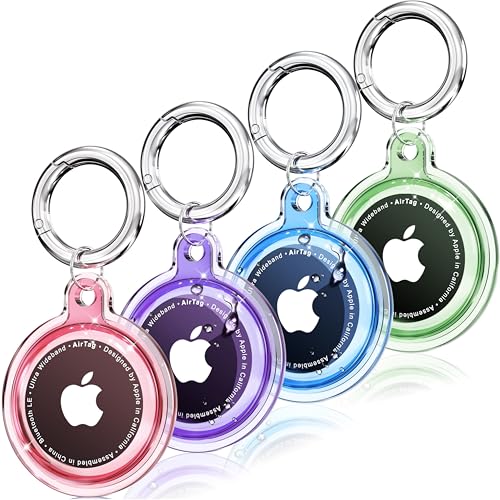4 Pack Airtag Holder, Airtag case Waterproof Apple Air Tag Case with Keychain, Shockproof & Dustproof Airtag Holders for Pet Tracking, Bags, Kids, Keys, Luggage(4 Colors)