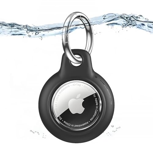 1 Pack for Airtag Holder, for Air Tag Case Waterproof for Apple Airtag Case with Keychain, PC Hard Shell Swivel Buckle, for Airtags Accessories Suitable for Tracking, Bags, Luggage, Keys-Black