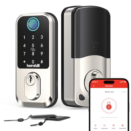 Wi-Fi Smart Deadbolt Keyless Entry: 9-in-1 Hornbill Smart Lock for Front Door, Smart Deadbolt Lock, Electronic Keypad Code Fingerprint Unlock, Works with Alexa for Home Office Hotel, Satin Nickel
