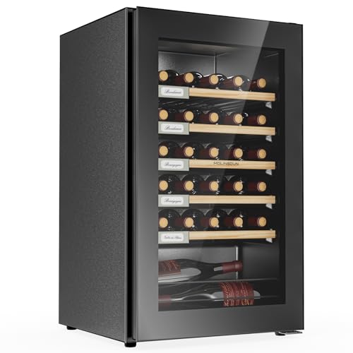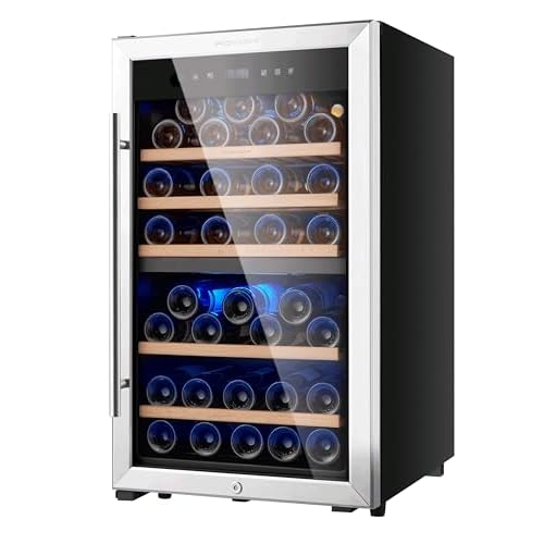 Wine Fridge, 33 Bottles Freestanding Wine Cooler, Intelligent Compressor, Frost Free, Glass Door, 41-64℉ Adjustable Digital Temperature Control, for Red, White, Champagne or Sparkling Wine