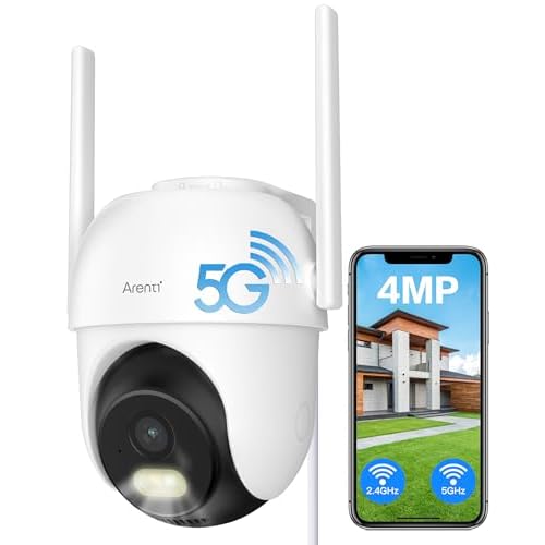 ARENTI Security Camera Outdoor Wired, 24/7 Recording Surveillance Camera for Home Security, 5GHz/2.4GHz WiFi, Regular Patrol, 2K 4MP Resolution, 360° PTZ Motion Tracking(OP1)