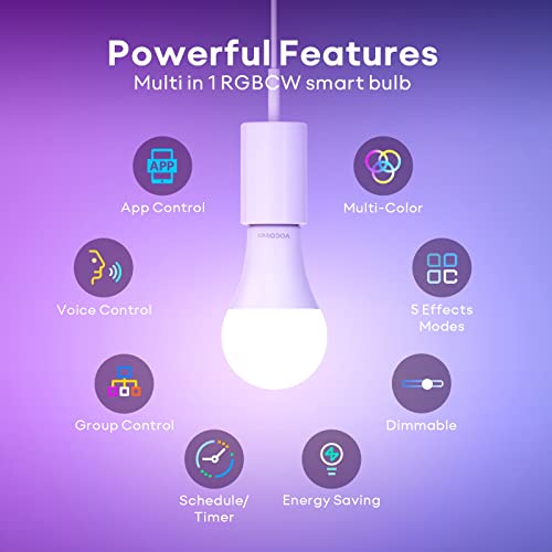 VOCOlinc Smart Light Bulb Works with Apple Homekit, Alexa, Google Home, Dimmable WiFi Smart Bulbs, 850 Lumens, E26 LED Smart Bulb 60 Watt Equivalent, A21, 2200K-7000K RGBW, 9.5W, 1 Pack