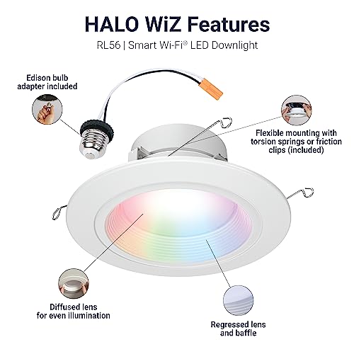 Elevate your lighting experience with HALO smart recessed LED lighting connected by WiZ Pro! Choose from 16M+ colors, dim to 5%, customize with white tuning, or sync the lights with music via the WiZ app (available for iOS and Android). Set the mood for holidays or entertaining, or let your lighting automatically sync to your routine with automated schedules and SpaceSense® motion detection. User-friendly yet powerful, this light operates over your home Wi-Fi and integrates with other smart home systems, including voice activation. Professionals can access advanced features and manage multiple projects with the WiZ Pro app. Designed to enhance new construction projects or replace existing can lighting, it fits most recessed housings, is great for wet locations like showers, and creates a premium, connected experience for modern homes. Designed and tested in the USA, HALO has been the contractor’s choice for nearly 70 years and remains North America’s leading recessed lighting brand