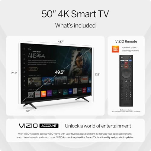 VIZIO 50 Inch V Series 4K UHD LED HDR Smart TV Bluetooth Compatible with Dolby Vision HDR/HDR10+, HDMI VRR, DTS Virtual X and WiFi 6 Dual-Band (V4K50M-0809)