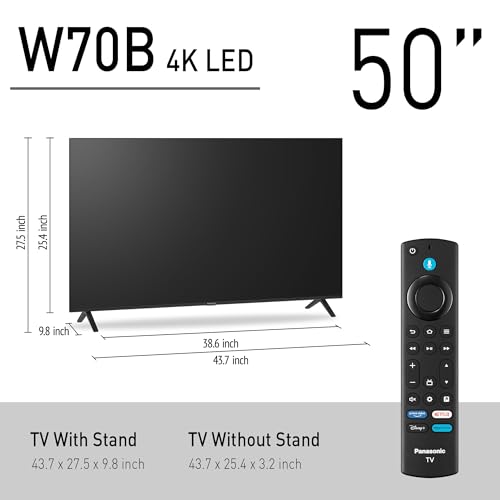 Panasonic W70 Series (2025 Model) 50″ LED 4K Ultra HD Smart Fire TV, Press & Ask Alexa, Apple AirPlay, HDR10+, HDMI 2.1, and Bluetooth Support – 50W70BP