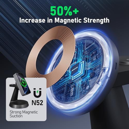 【Powerful Magnetic Easy & Secure】Strong suction allows you to easily align your iPhone and ensures the convenience and security of charging and holding your devices in any orientation portrait or landscape. The wireless charger stand optimizes the support structure and increases stability and the sturdiness of the stand. The base has an almost full-circle anti-slip design, ensuring you can remove your iPhone with one hand without it tipping over.