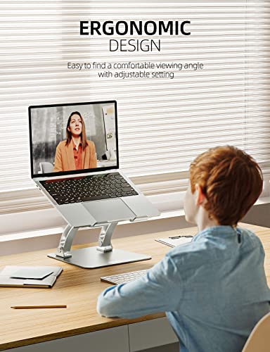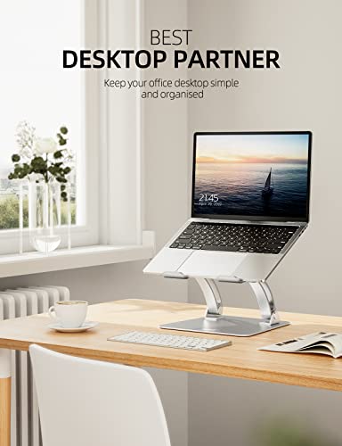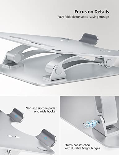 Nulaxy Fully Adjustable Laptop Stand for Desk, Dual Foldable Aluminum Computer Riser with Heat-Vent, Ergonomic Notebook Holder Portable Office Accessories Compatible with All 10-17″ Laptops, Silver